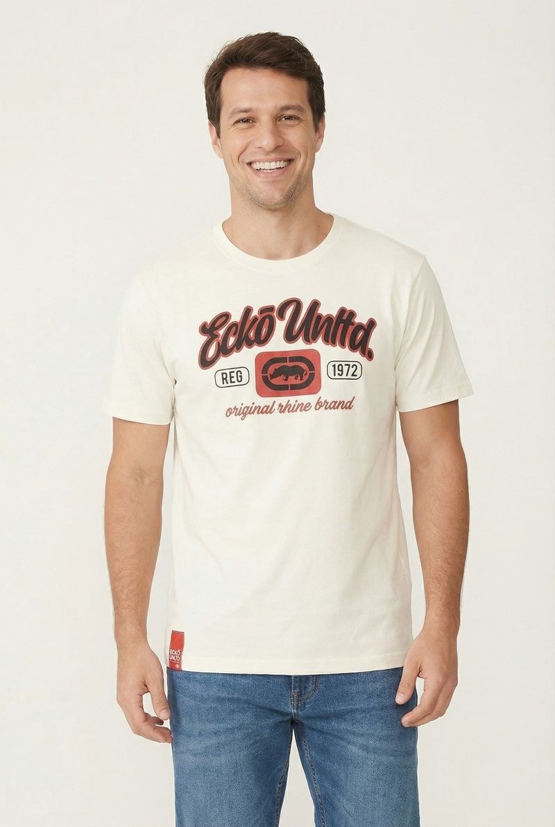 A Camiseta Ecko Unltd Masculina da Caedu eleva seu estilo urbano. Confeccionada em 100% algodão de meia malha, oferece conforto e durabilidade. Seu design off white com o icônico logo clássico da Ecko Unltd garante um visual autêntico e moderno para quem busca roupas de qualidade e moda atual.