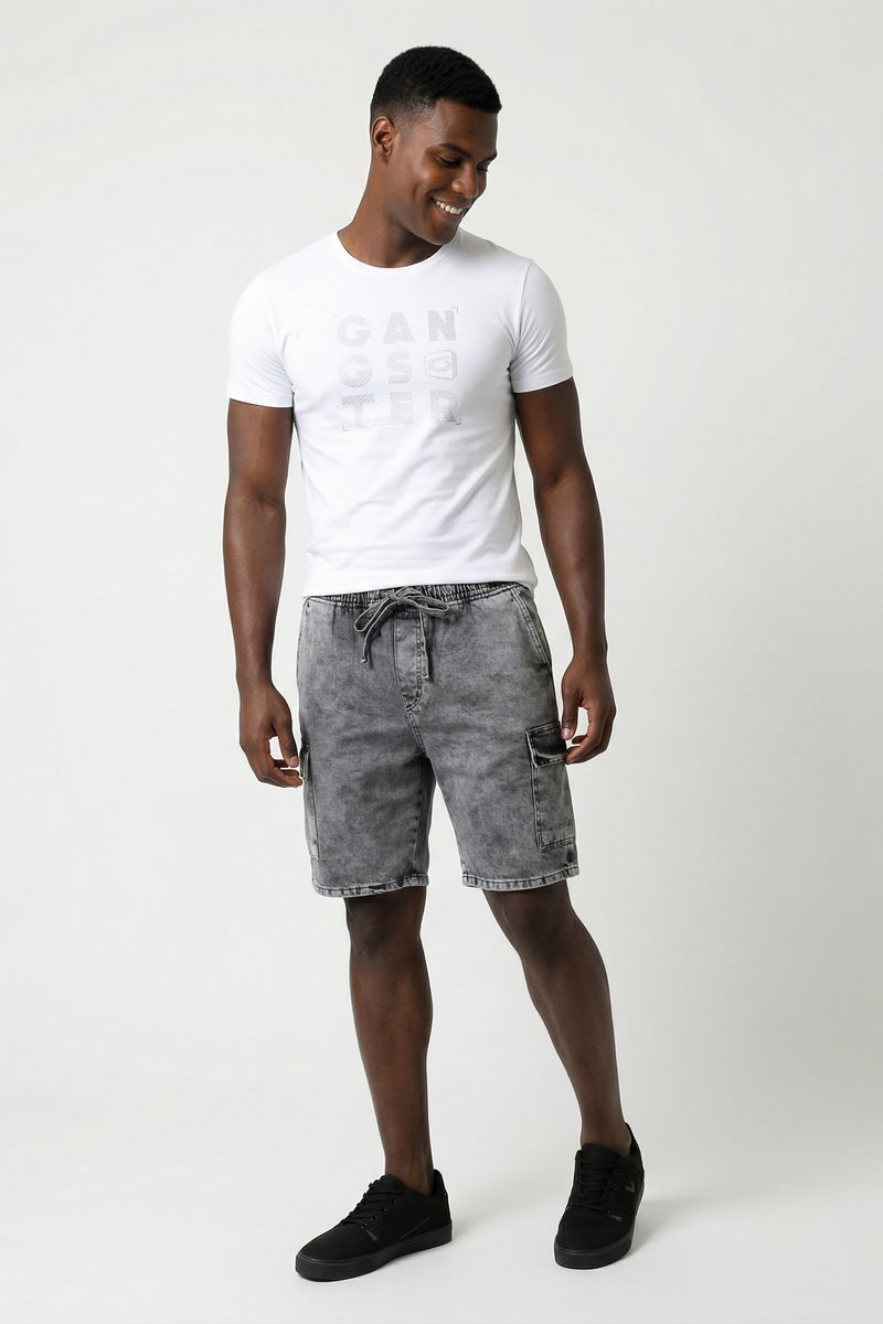 A Camiseta Masculina Streetwear Caedu eleva seu estilo. Confeccionada em 100% algodão de meia malha, oferece conforto e caimento justo. A estampa Gangster texturizada em tons de cinza adiciona um toque autêntico e moderno, ideal para sua roupa de moda.