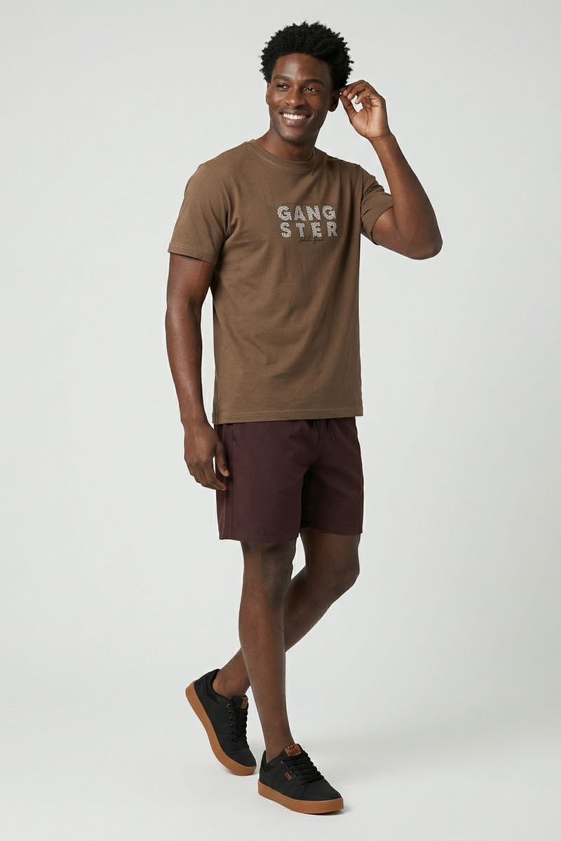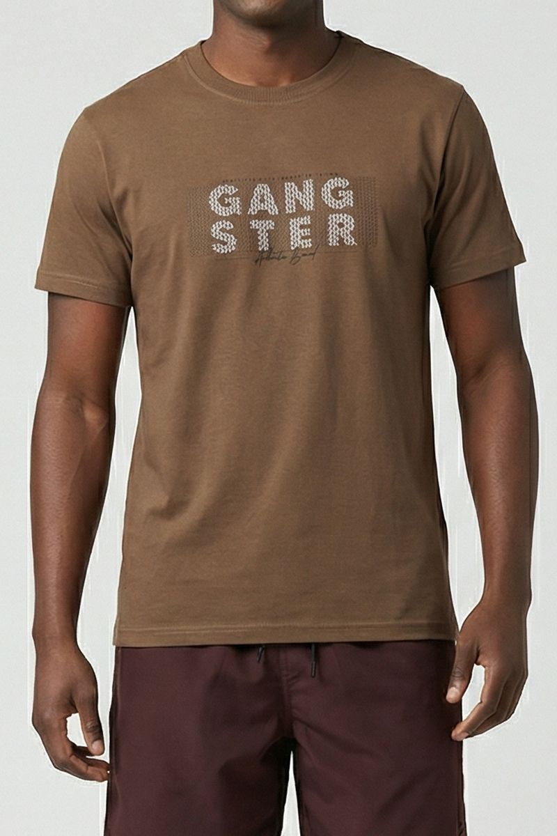 A Camiseta Masculina Marrom Estampa GANGSTER Texturizada Streetwear combina estilo e conforto. Em 100% algodão de meia malha, oferece toque suave. Sua estampa GANGSTER texturizada adiciona atitude e modernidade.