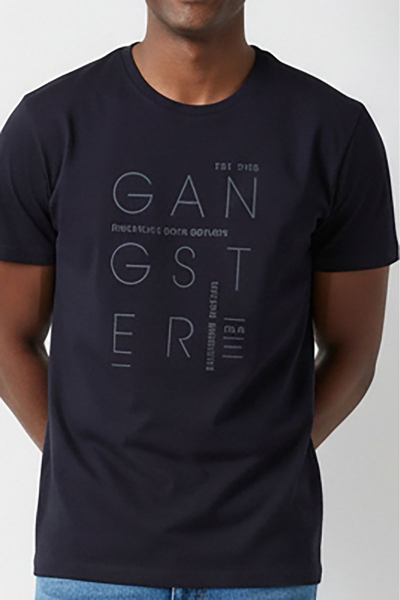 Eleve seu estilo com a Camiseta Masculina Gangster Streetwear Caedu. Confeccionada em 100% algodão de meia malha, oferece conforto superior e durabilidade. Seu design urbano com estampa 'GANGSTER' em azul-marinho destaca a personalidade, ideal para quem busca roupas de moda autêntica e marcante.