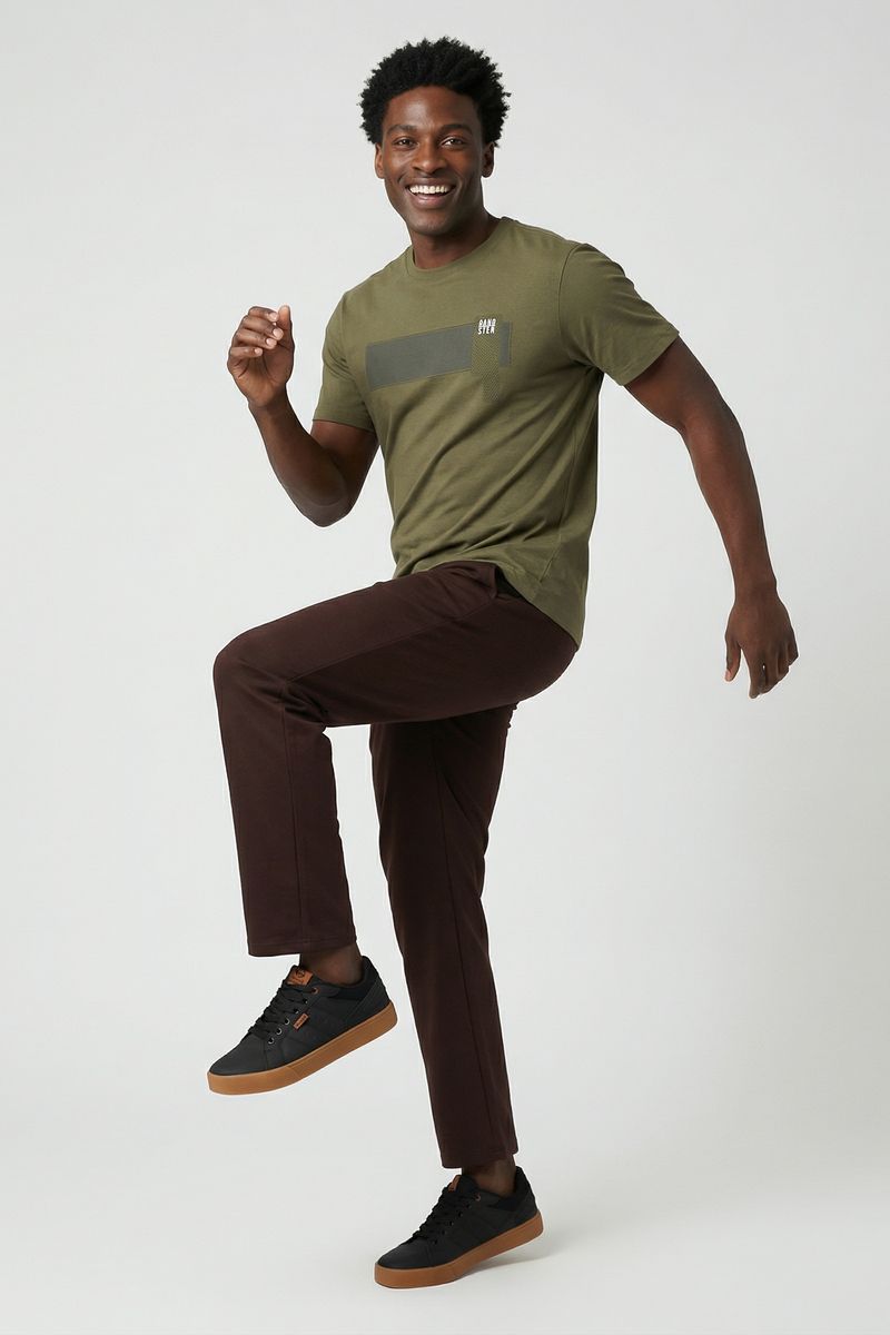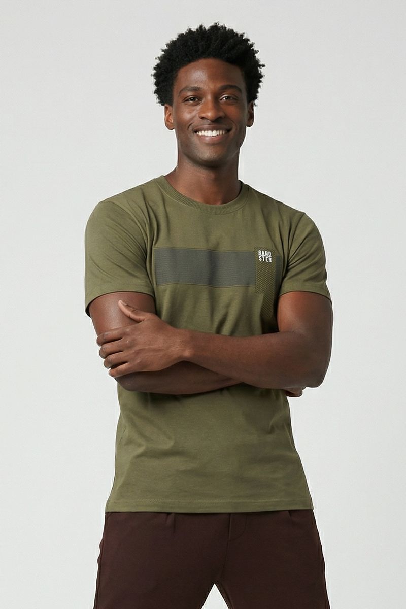 Sinta o conforto e o estilo da Camiseta Masculina Caedu Verde Oliva. Feita em 100% algodão de meia malha, esta peça casual oferece toque macio e caimento perfeito. Com design moderno e faixa horizontal, é ideal para quem busca roupas versáteis e cheias de personalidade.