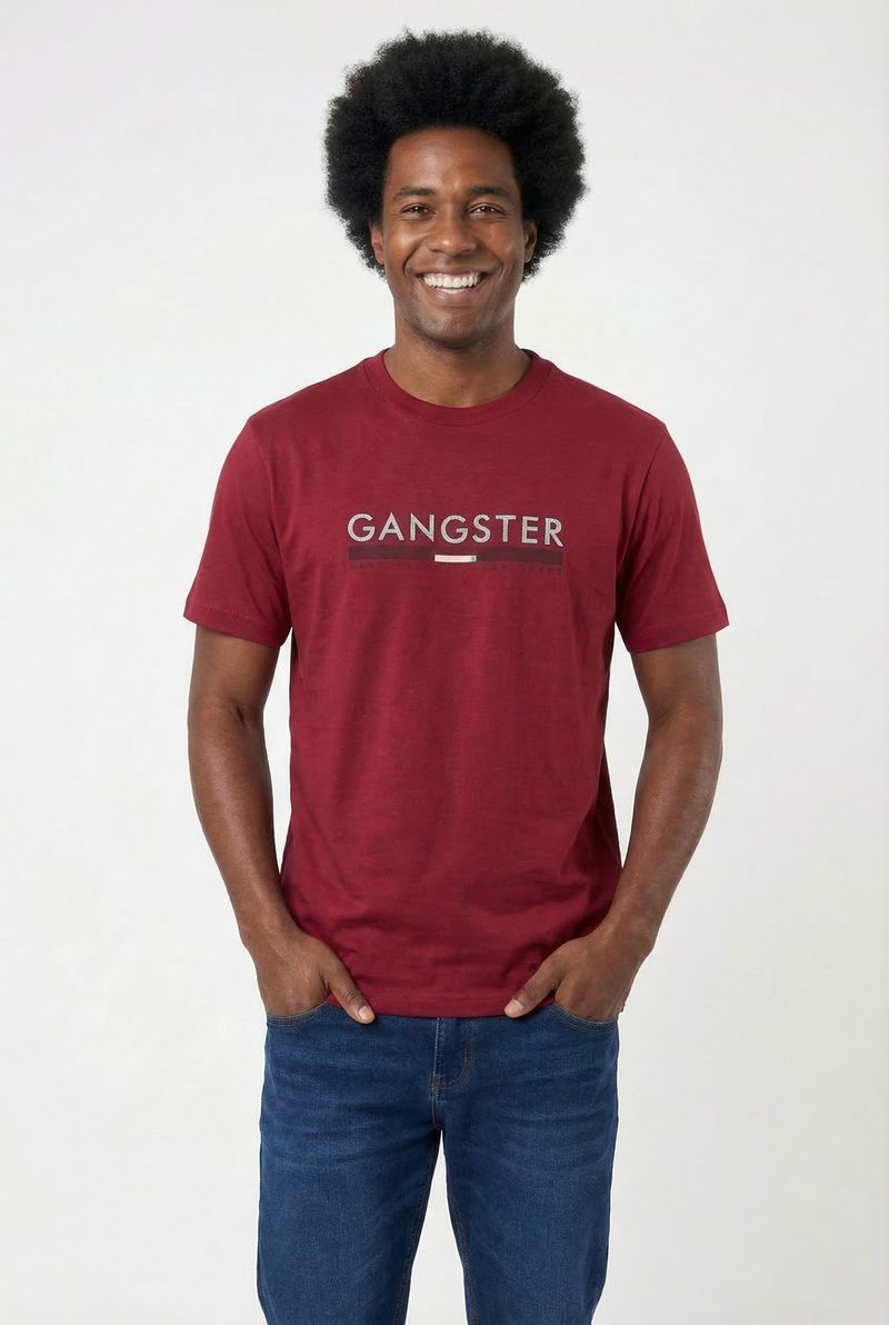 Camiseta Masculina GANGSTER Bordô Caedu, em