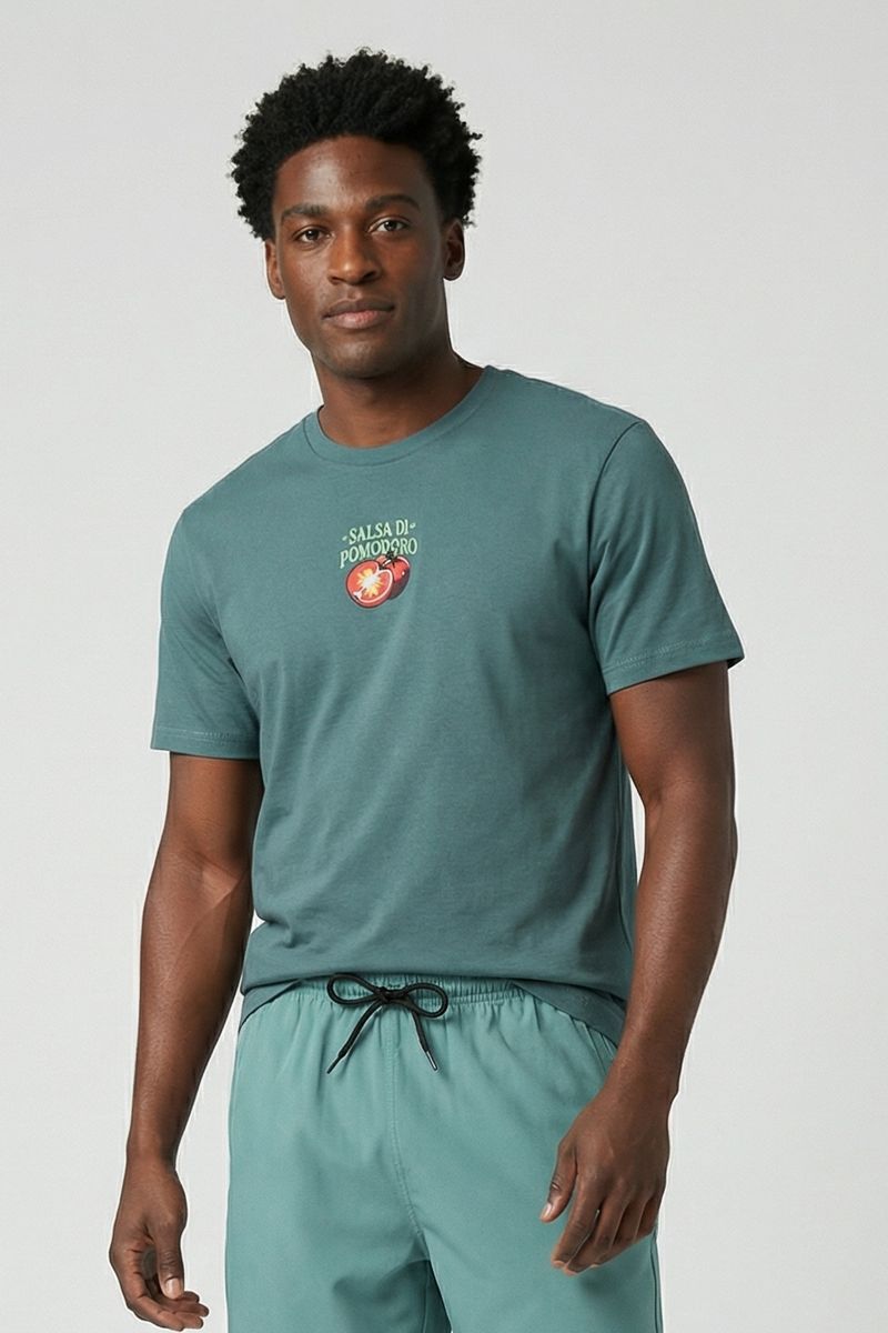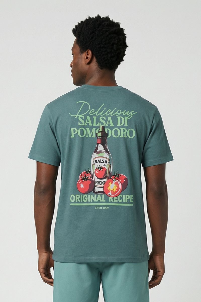 Camiseta Masculina Verde com Estampa 'Salsa di Pomodoro' Caedu