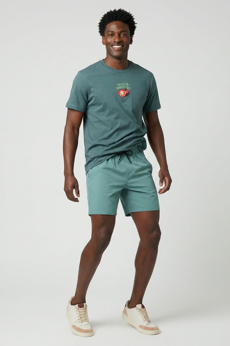 camiseta verde com jeans de lavagem clara ou escura para um visual clássico. Para um toque mais moderno, experimente com bermudas de sarja ou calças chino. Complete o conjunto com tênis casuais, sapatênis ou até mesmo sandálias para dias mais quentes, e adicione acessórios como um relógio ou pulseiras para realçar seu estilo único.