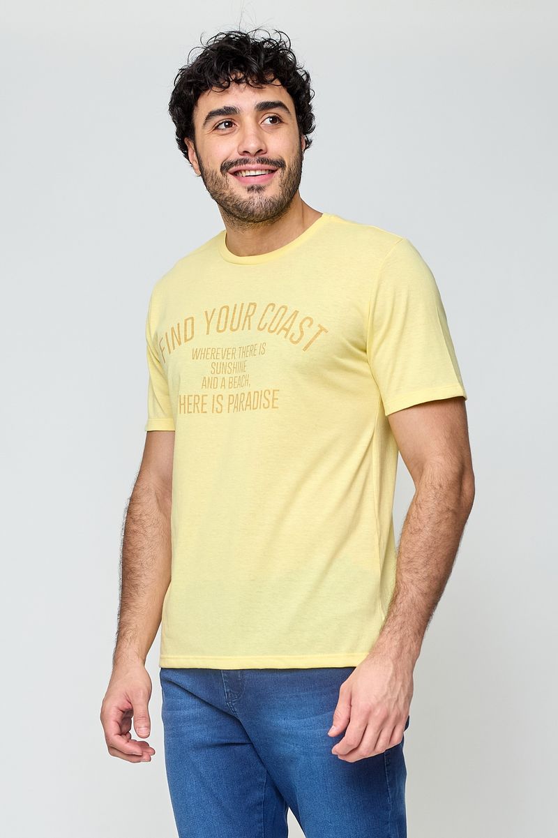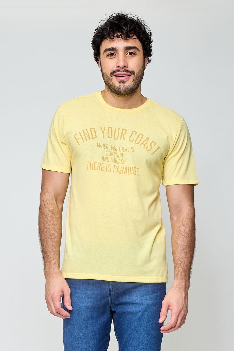 A Camiseta Masculina Casual Estampada Amarela Caedu é ideal para um visual moderno e descontraído. Em 100% algodão, oferece conforto. Com estampa 'Find Your Coast', esta roupa da Caedu é pura moda e estilo. Garanta a sua!