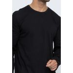 Camiseta masculina lisa, modelo casual. A peça apresenta caimento reto e solto, manga longa e gola redonda.