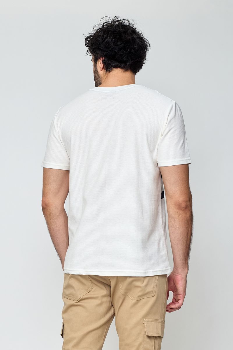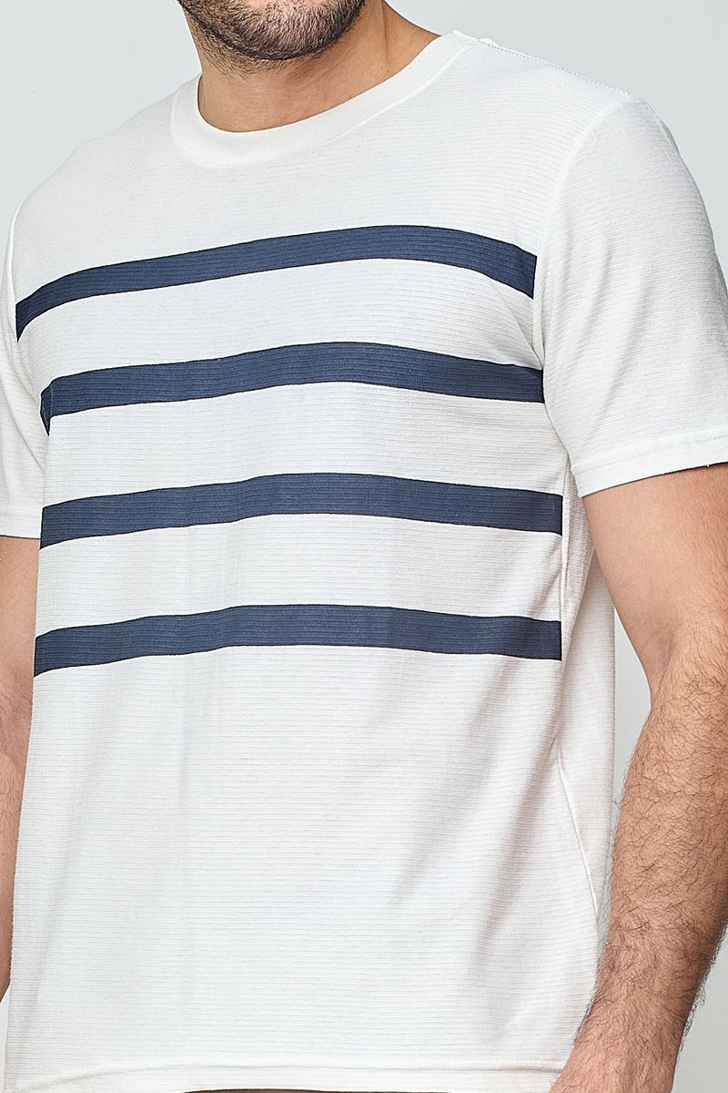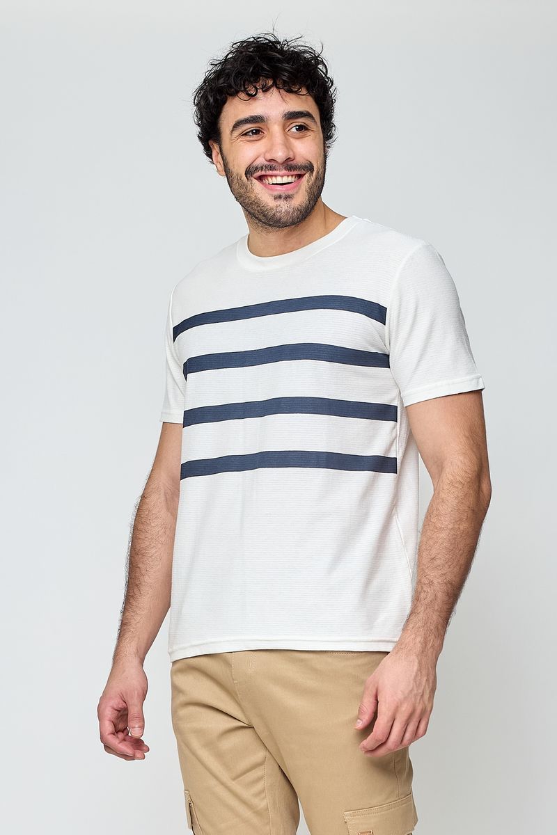 Camiseta masculina casual branca com listras. Moderna e prática.