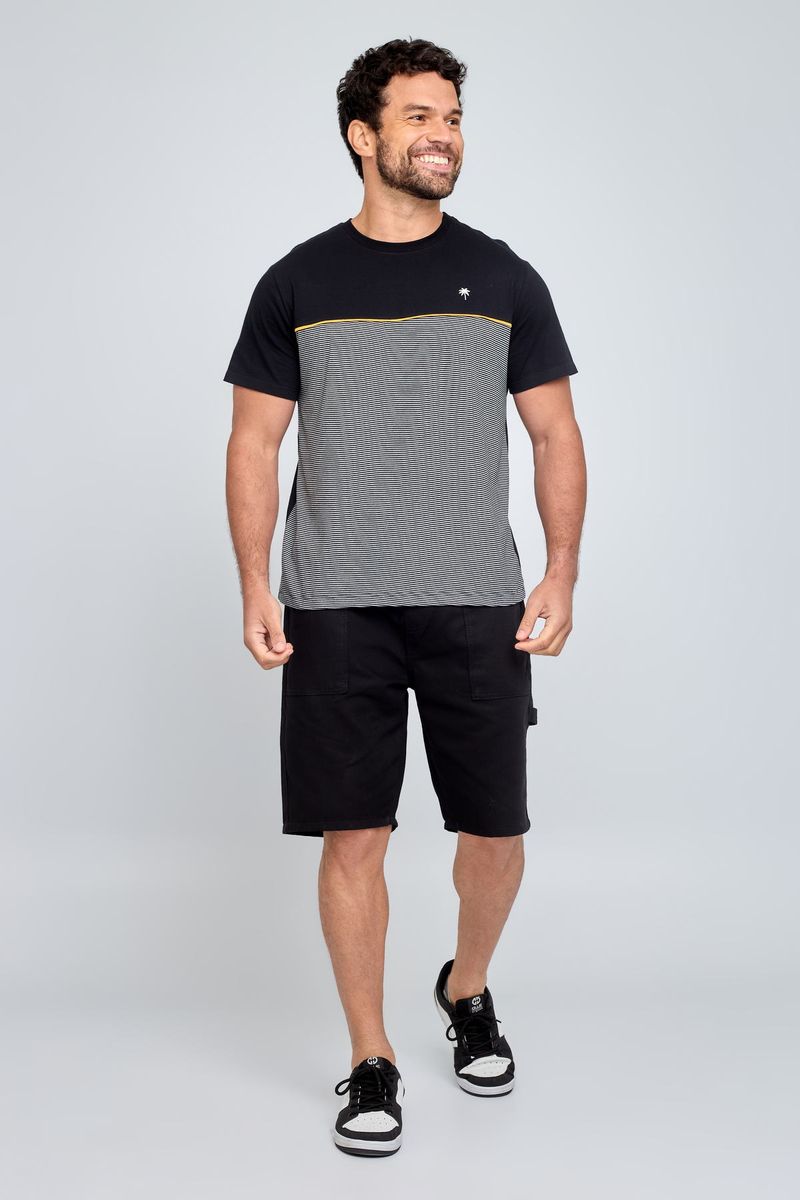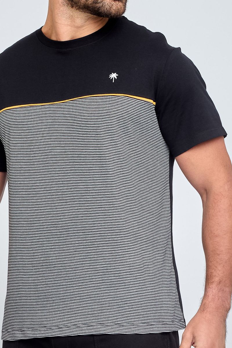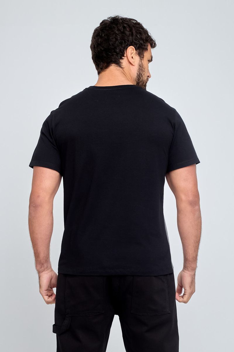 Camiseta masculina casual preta, básica e versátil, perfeita para composições modernas e descomplicadas.