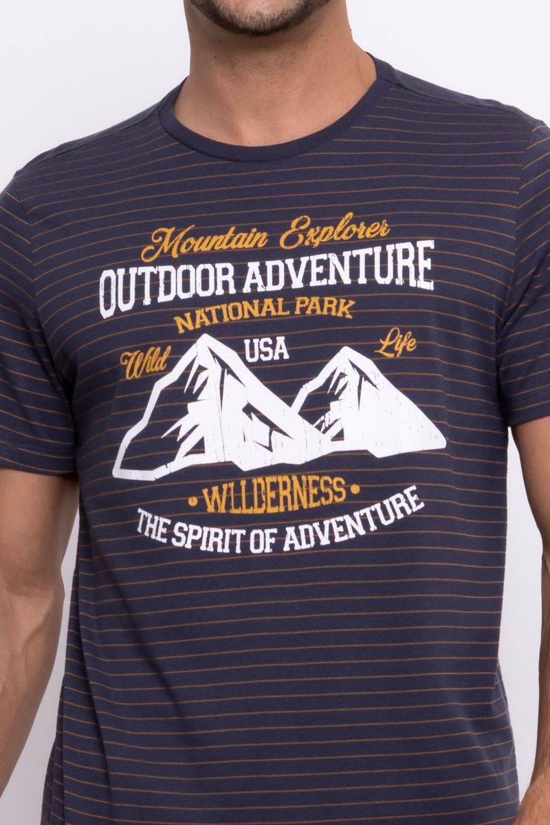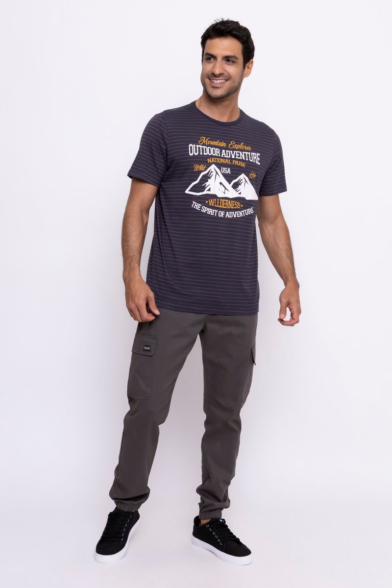 Camiseta Masculina com Estampa Montanhas Azul Marinho