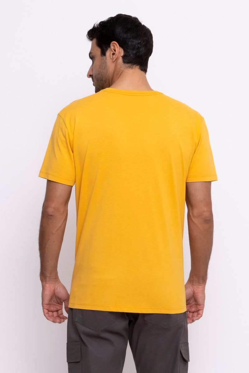 Camiseta Masculina em Malha Penteada Mostarda