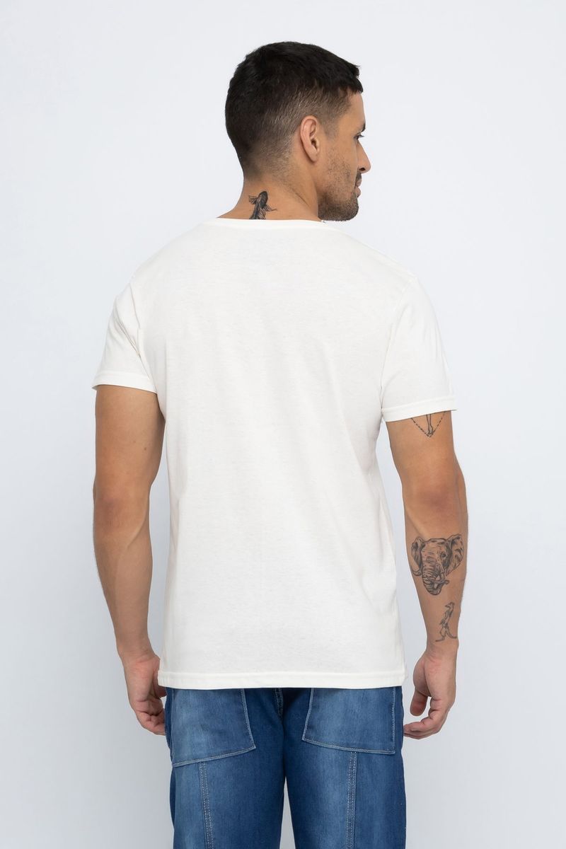 Camiseta masculina, modelo casual. A peça apresenta caimento reto e solto, possui estampa, manga curta e gola redonda.