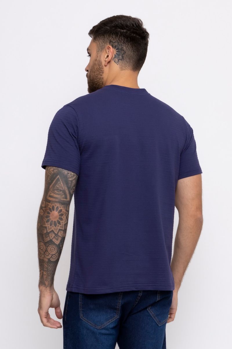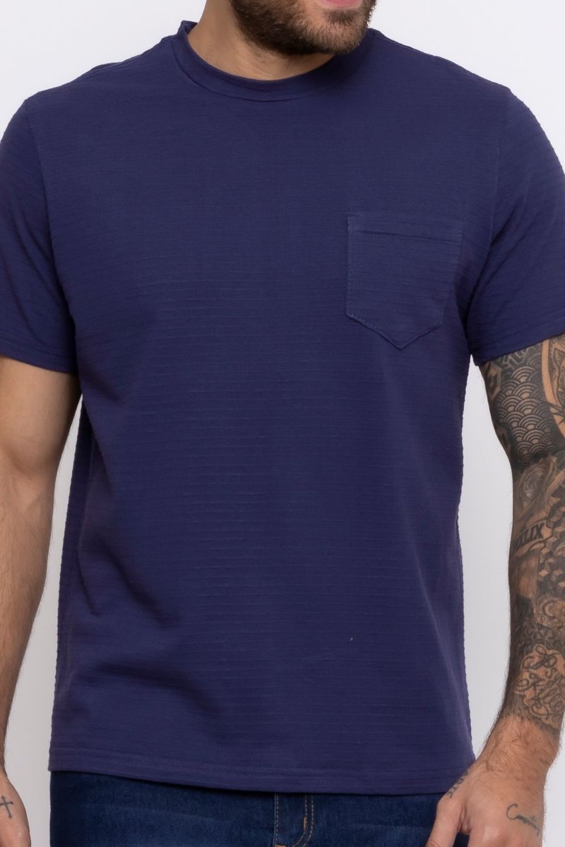 Camiseta Masculina Maquinetada com Bolso Azul Marinho