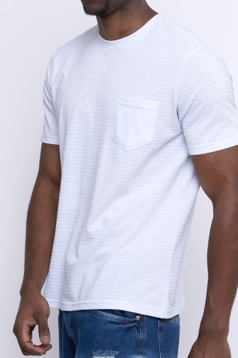 VestuárioMasculinoNovidadesCamisetasCamiseta Masculina Maquinetada com Bolso Branca