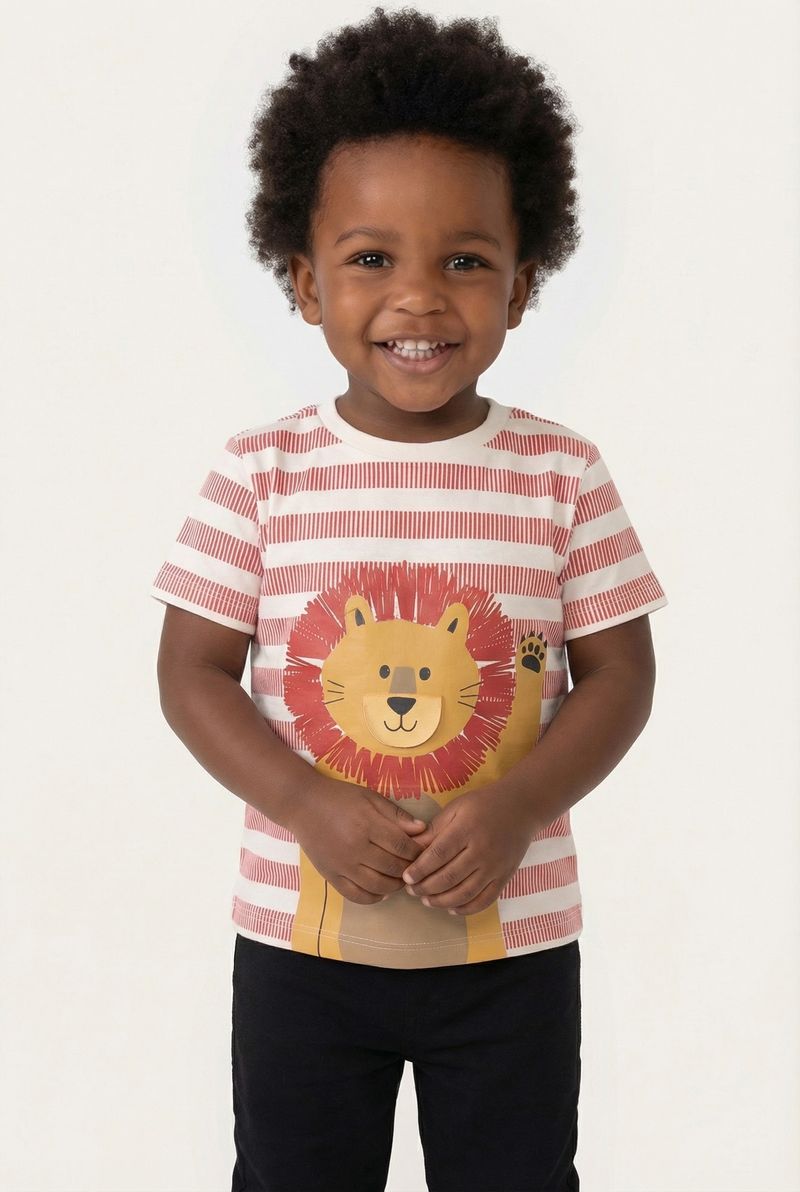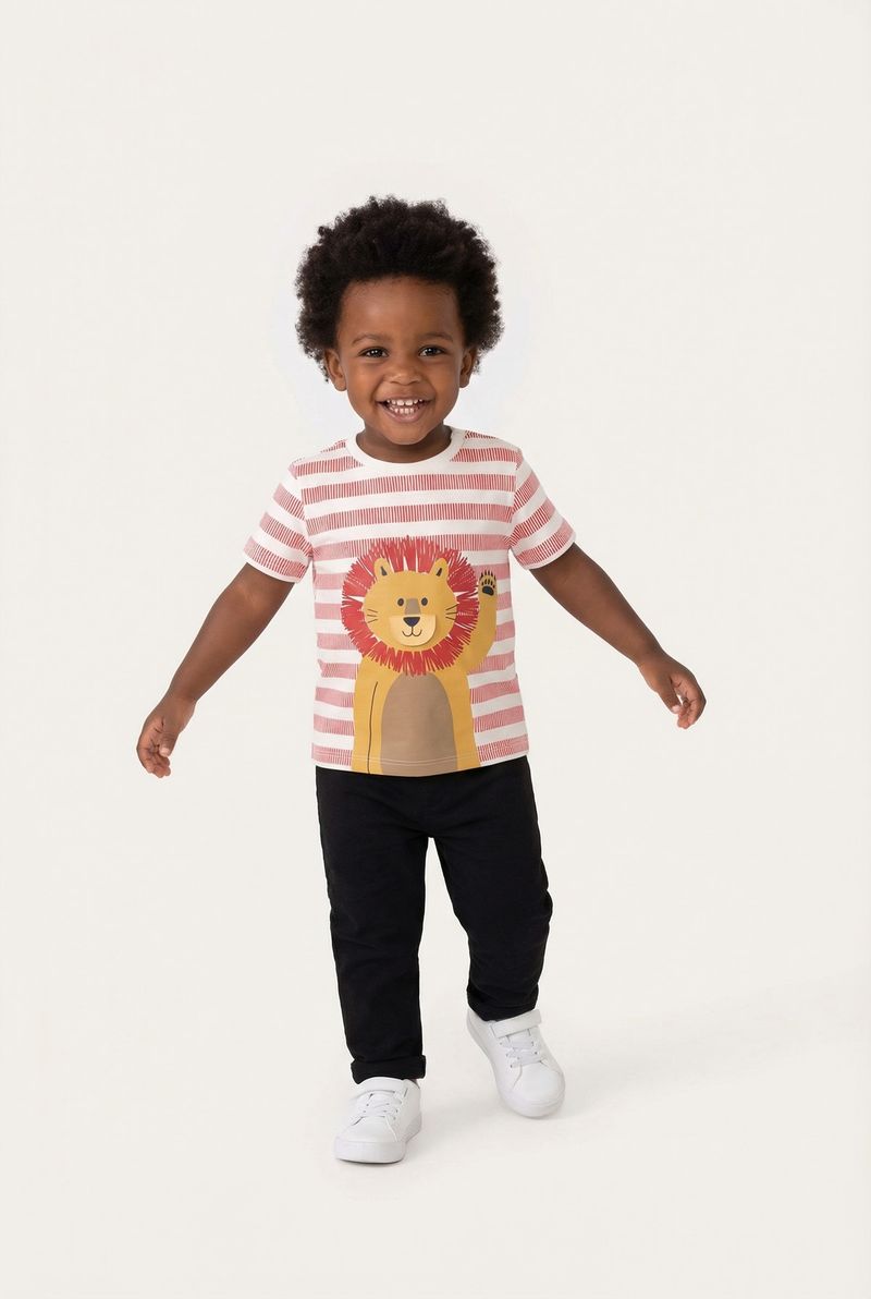 VestuárioInfantilCamisetasCamiseta m/c 1/3nos 1274839 bichinhos listrado