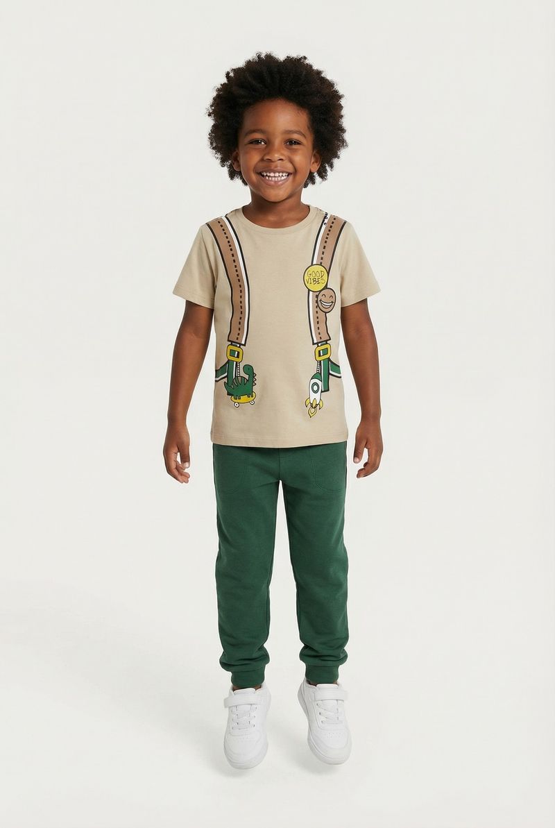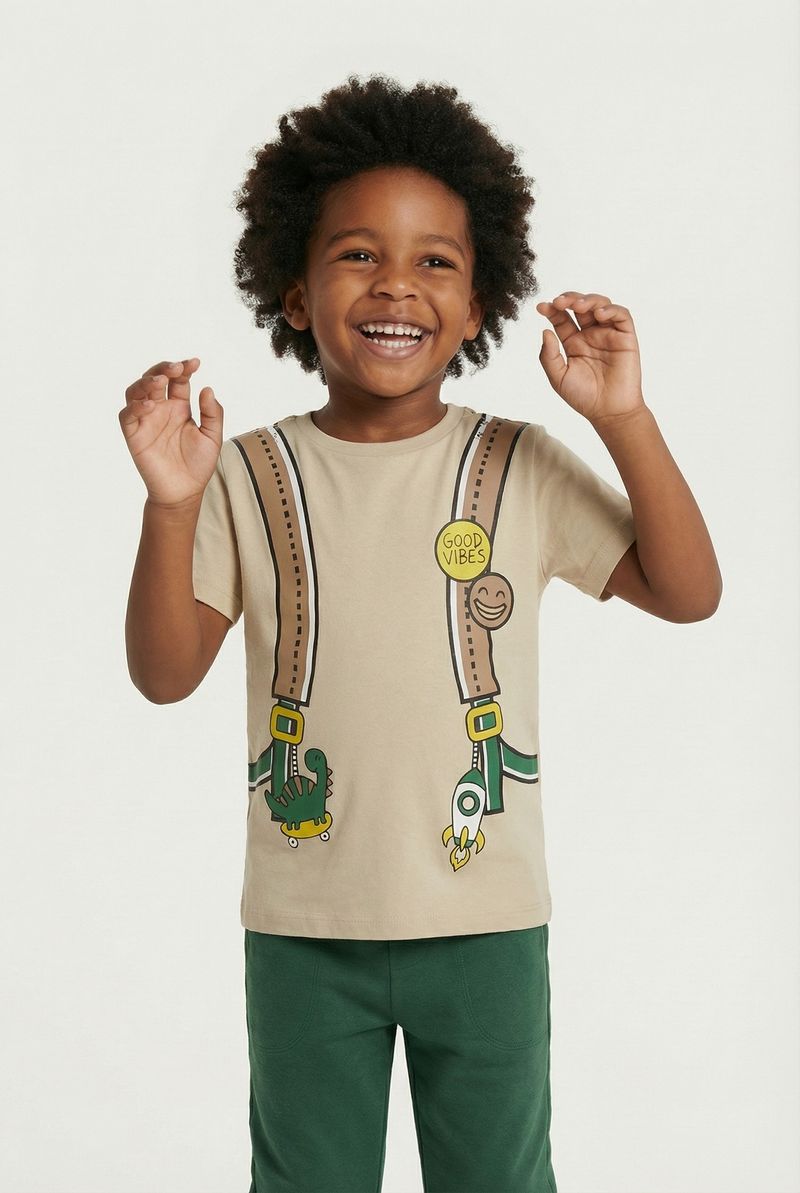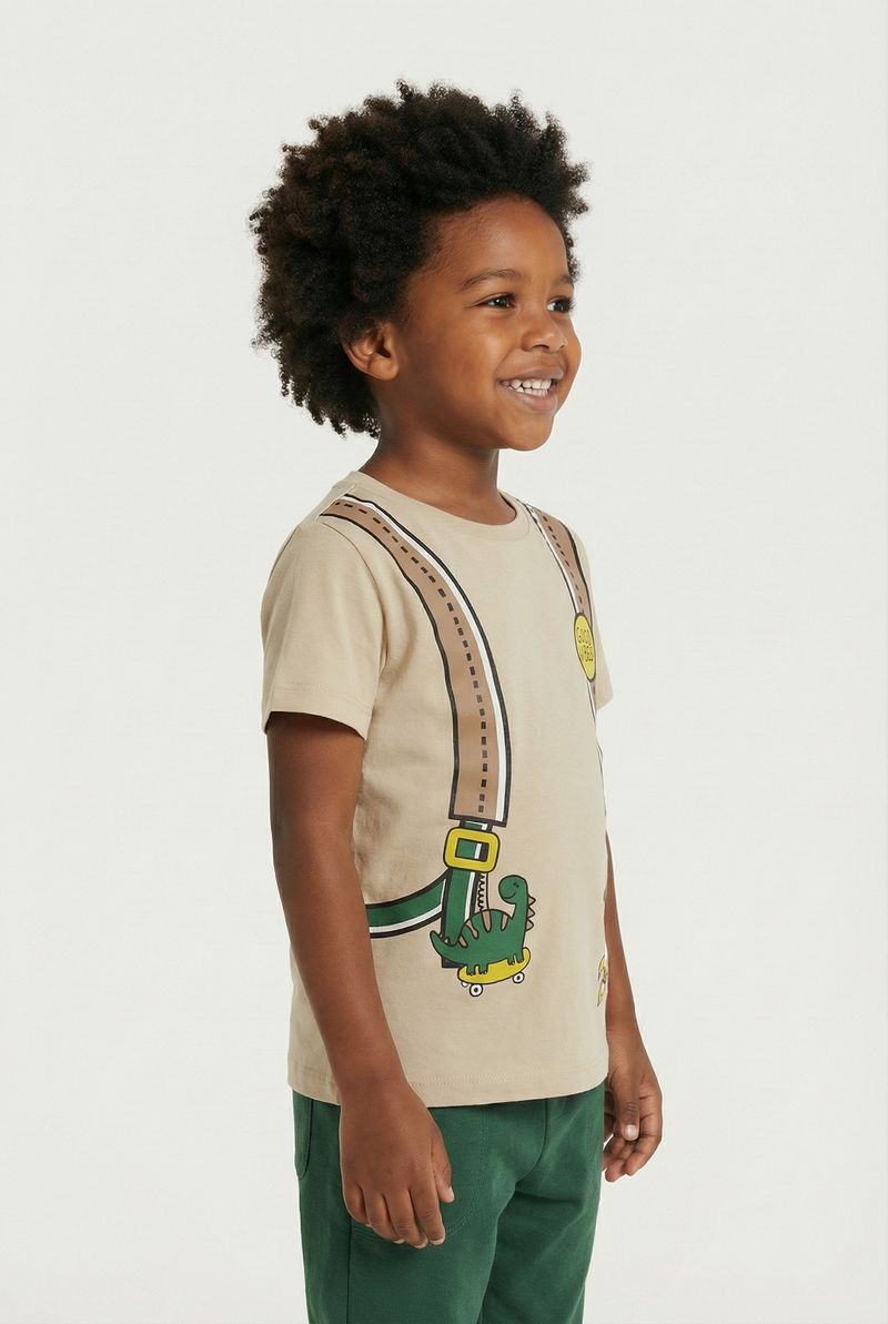 VestuárioInfantilCamisetasCamiseta m/c 4/8 nos 1275076 dino bege bege
