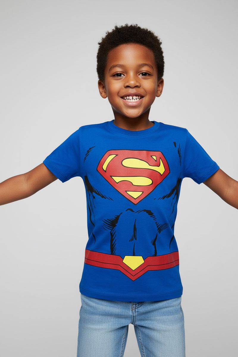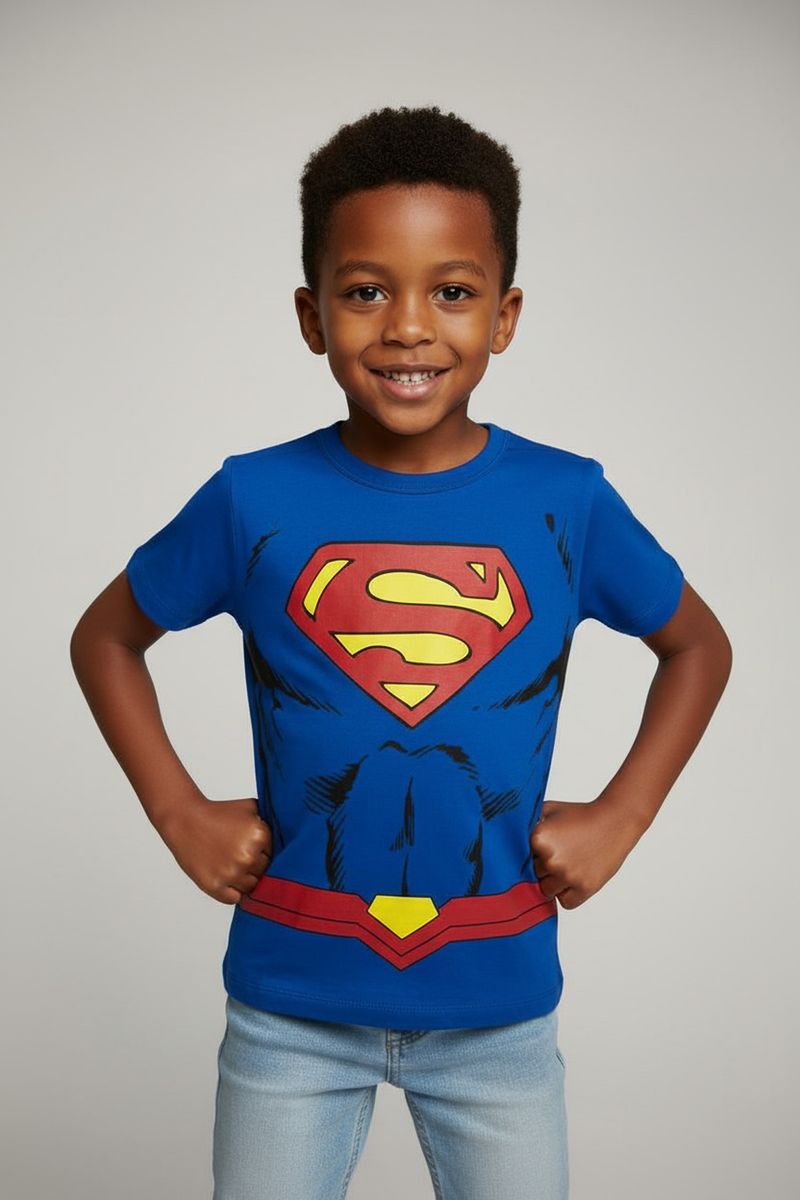 Vista seu pequeno herói com a Camiseta Infantil Menino Superman Azul Caedu! Feita em 100% algodão de meia malha, oferece conforto e liberdade para todas as aventuras. Com estampa vibrante do Superman, esta roupa infantil inspira coragem e diversão.