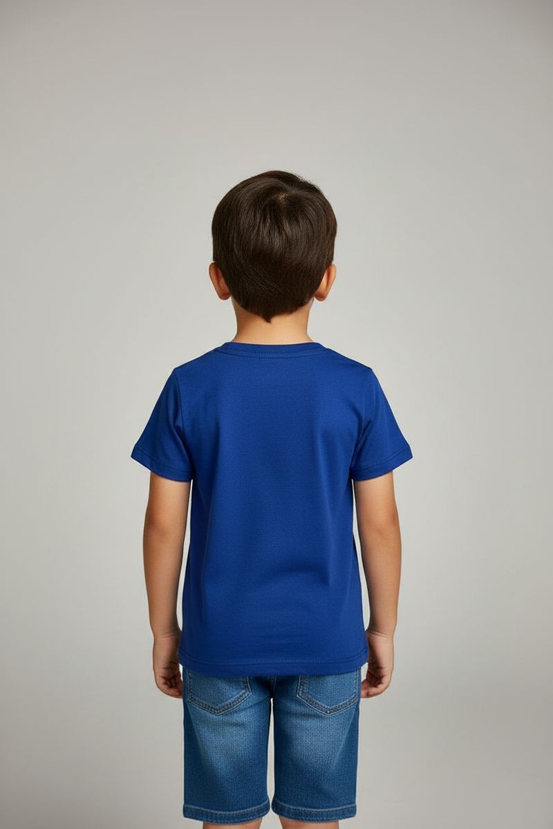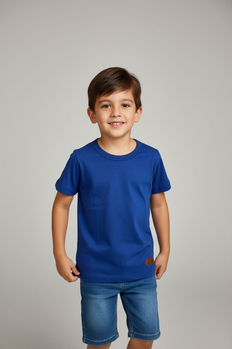 Combine esta camiseta azul royal com shorts jeans para um visual despojado, ou com bermudas de sarja para um toque mais arrumado. Nos pés, tênis confortáveis são ideais. Para um look completo, adicione um boné ou uma jaqueta leve em dias mais frescos, criando um estilo versátil e cheio de personalidade para os meninos.