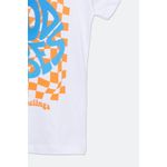 Camiseta juvenil estampada. A peça possui caimento reto e solto, manga curta e gola redonda.