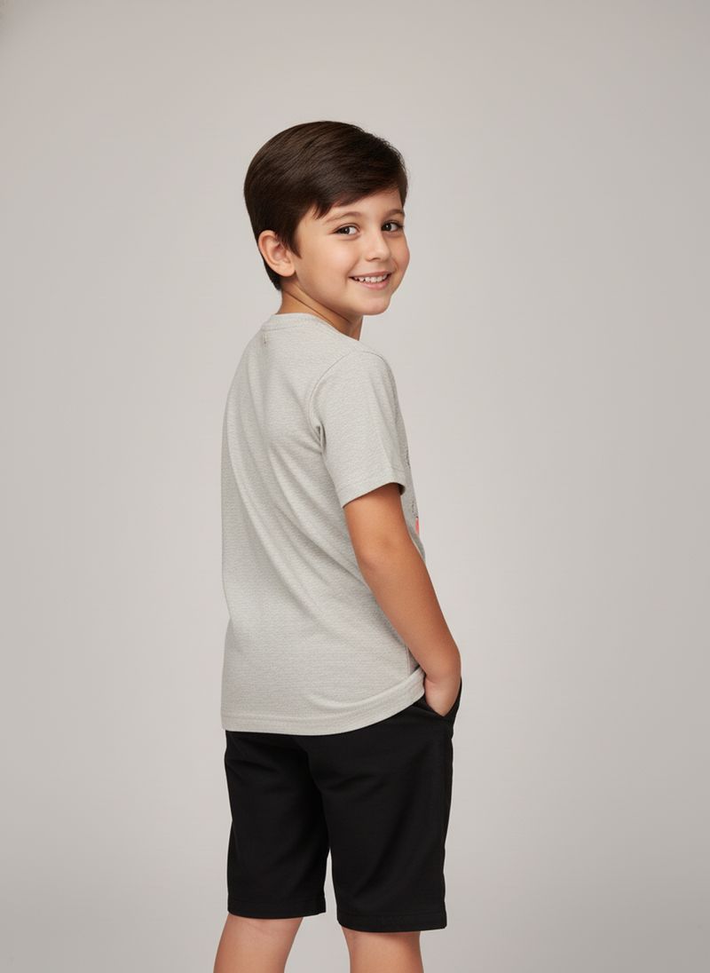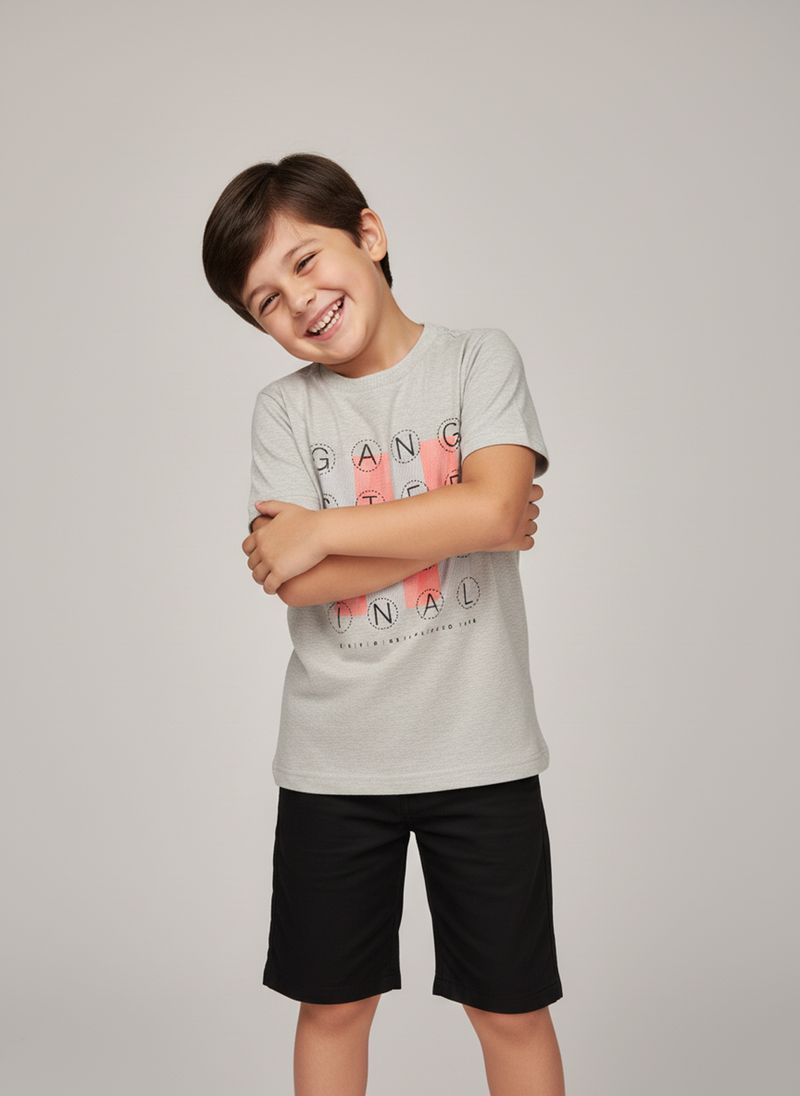 Combine esta camiseta infantil com shorts pretos ou calças jeans para um visual despojado. Adicione um tênis moderno e uma jaqueta leve para um toque extra de estilo. Crie looks casuais e cheios de personalidade para seu pequeno.