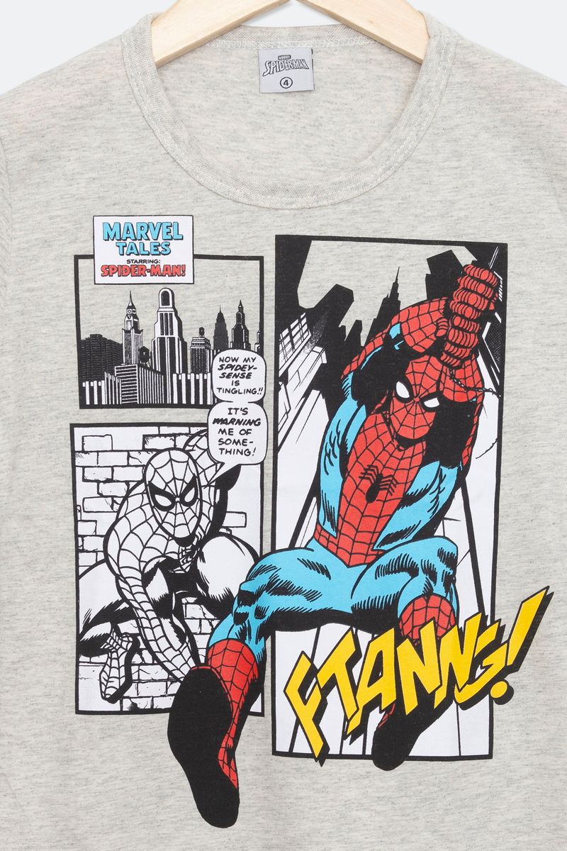 Camiseta Infantil com Estampa Spider Man Mescla Tam 4 a 10