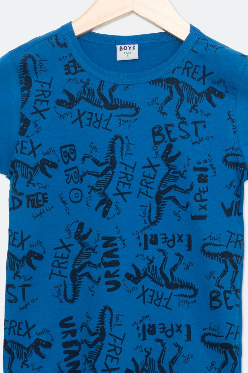 Camiseta Infantil com Estampa Dinossauro Azul Tam 4 a 8