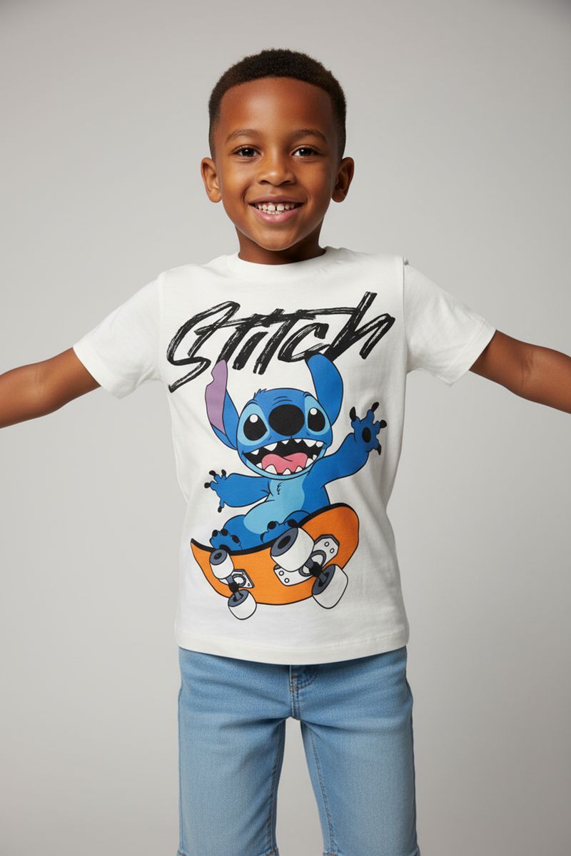 A Camiseta Infantil Caedu Stitch Radical no Skate é a roupa ideal para os pequenos. Feita em 100% algodão de meia malha, garante conforto e durabilidade. A estampa vibrante do Stitch no skate adiciona um toque de diversão e estilo.