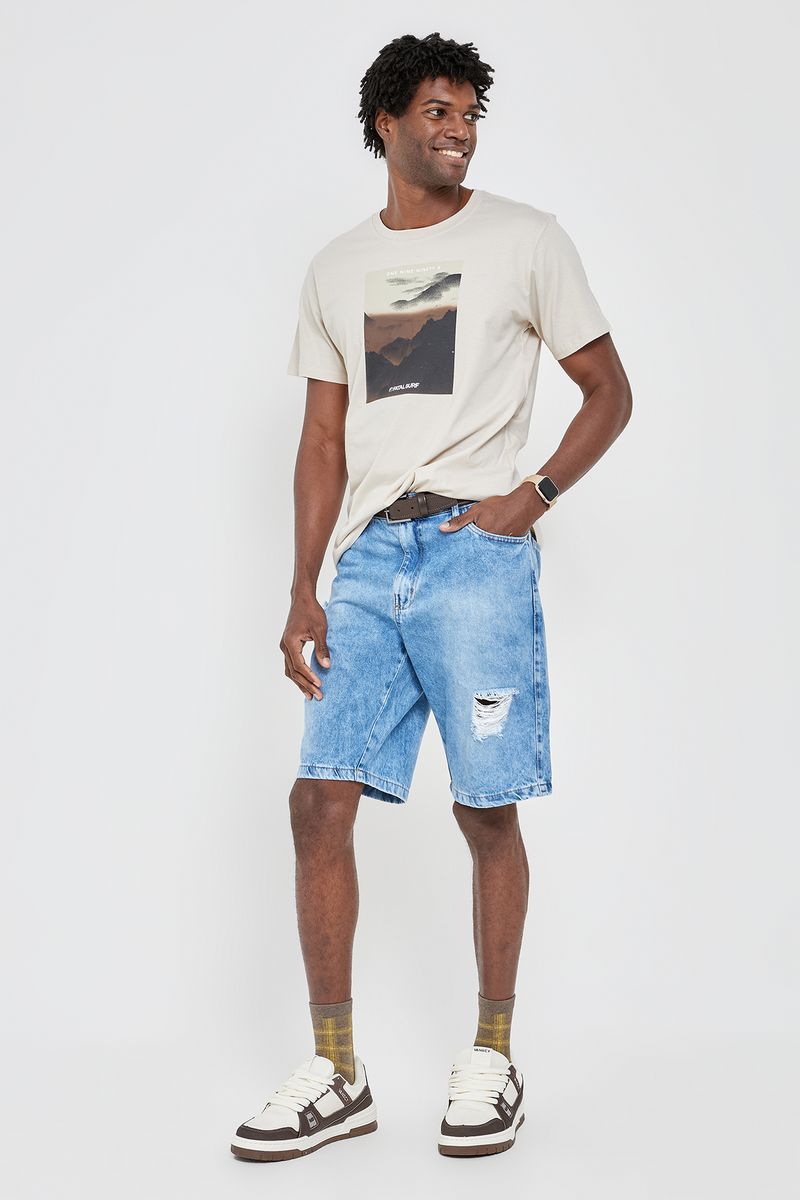 Combine sua camiseta bege claro com bermudas jeans ou calças chino para um visual casual e moderno. Para um toque mais despojado, adicione um tênis branco e um boné. Em dias mais frescos, uma jaqueta leve ou camisa xadrez aberta sobre a camiseta complementa o look com muito estilo e personalidade.