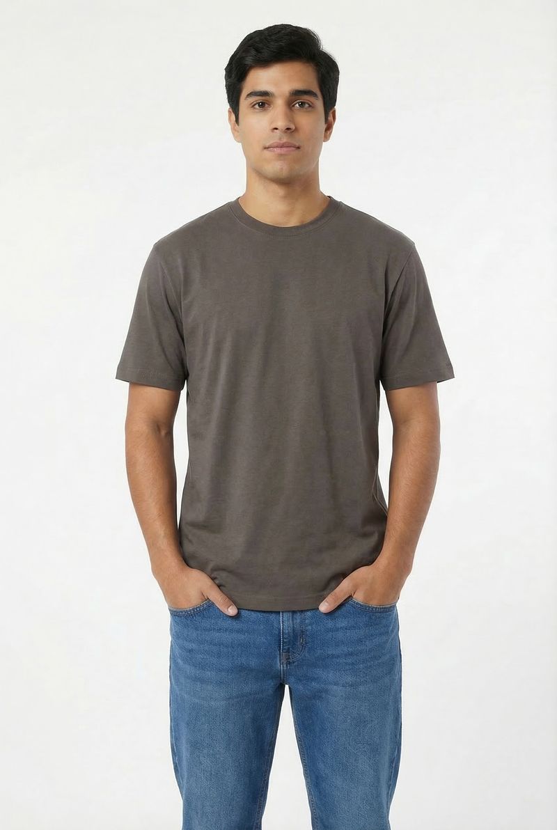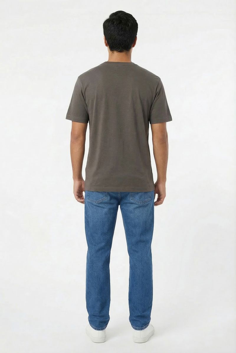 Experimente a Camiseta Masculina Essencial Algodão Penteado Marrom Escuro da Caedu, perfeita para o homem moderno. Confeccionada em 100% algodão de meia malha, oferece toque macio e caimento impecável. Sua cor marrom escuro, um elegante tom terroso, eleva seu estilo, garantindo versatilidade e um visual sofisticado para qualquer ocasião, ideal para quem busca roupas de alta moda.