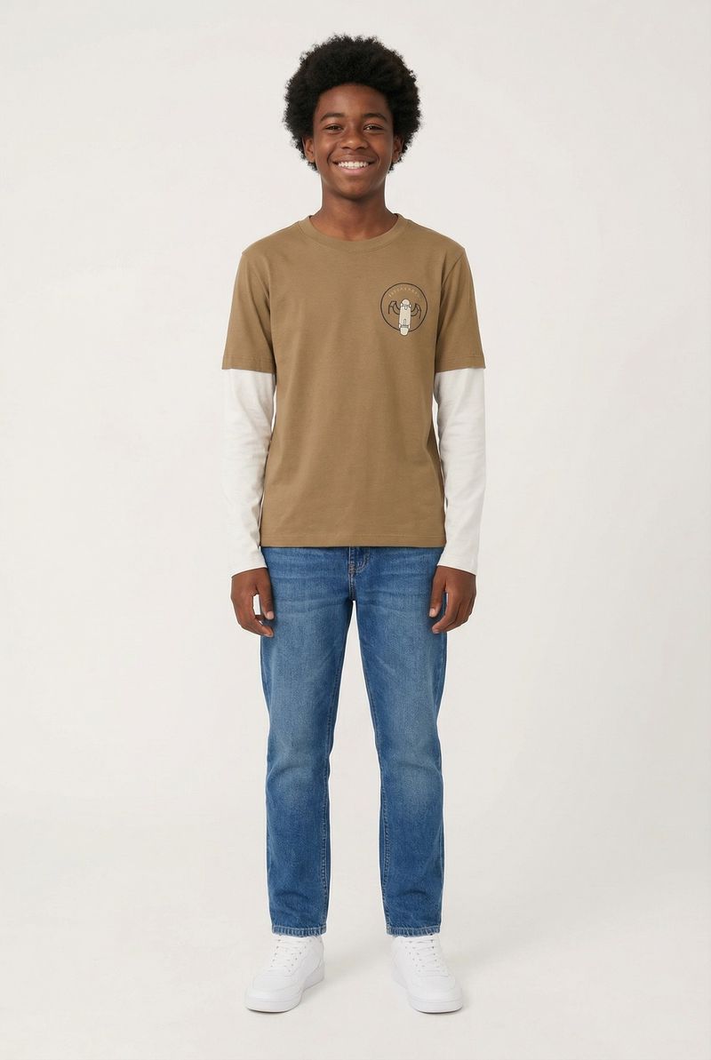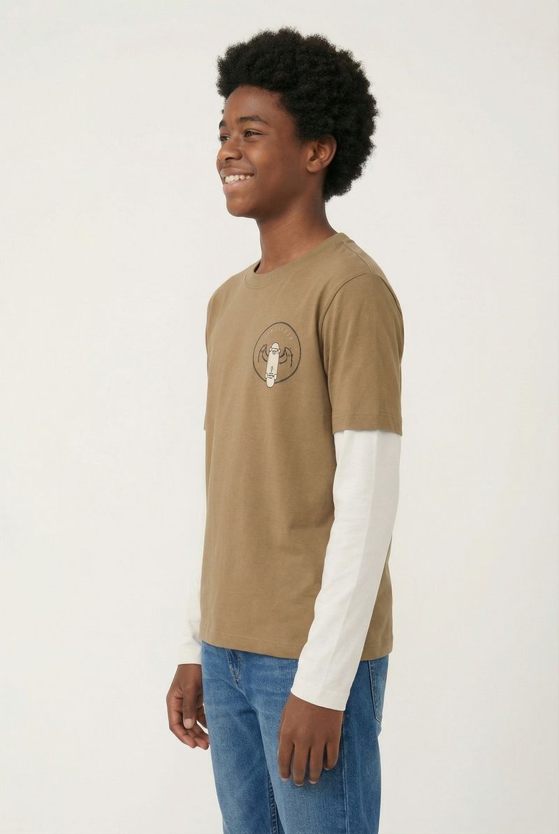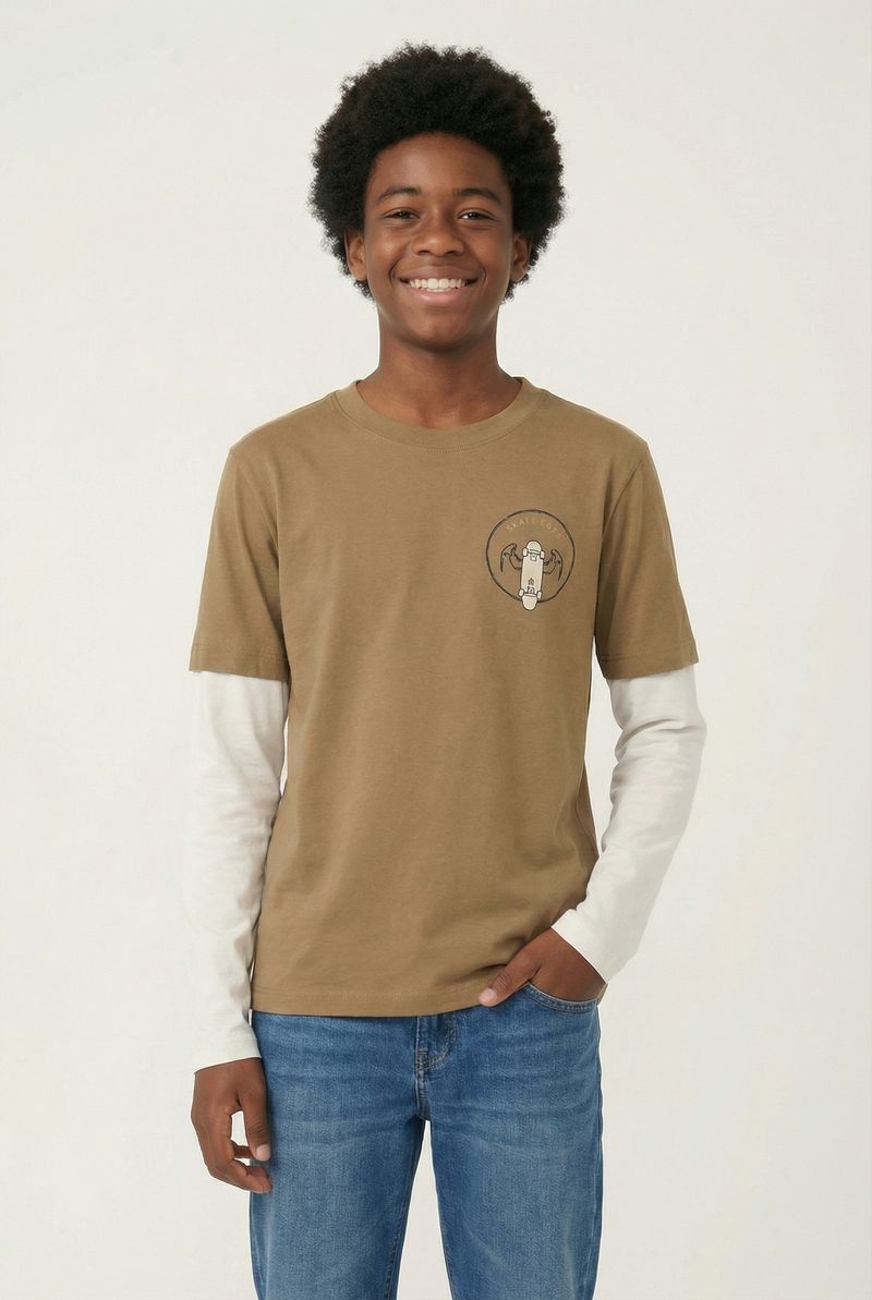 VestuárioInfantilCamisetasCamiseta m/l 10/16 nos cdjuvo288 skate bege caqui