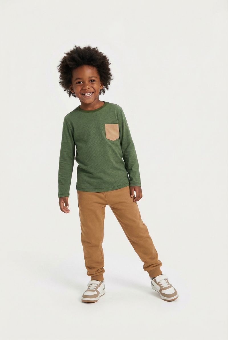 VestuárioInfantilCamisetasCamiseta m/l 4/8nos 1275552 verde mili verde militar