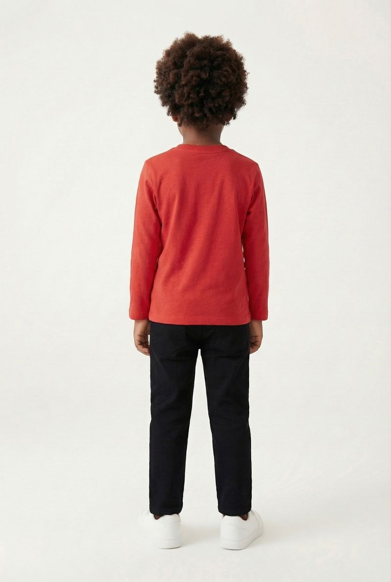 Combine esta blusa vibrante com calças jeans ou pretas para um visual casual e confortável. Para um toque mais despojado, shorts e tênis brancos são perfeitos. Adicione uma jaqueta leve para sobreposição em dias mais frescos, criando um look versátil e cheio de estilo para os pequenos aventureiros.