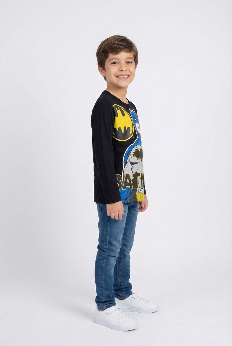 VestuárioInfantilCamisetasCamiseta m/l info 4/10 nos batman preto preto