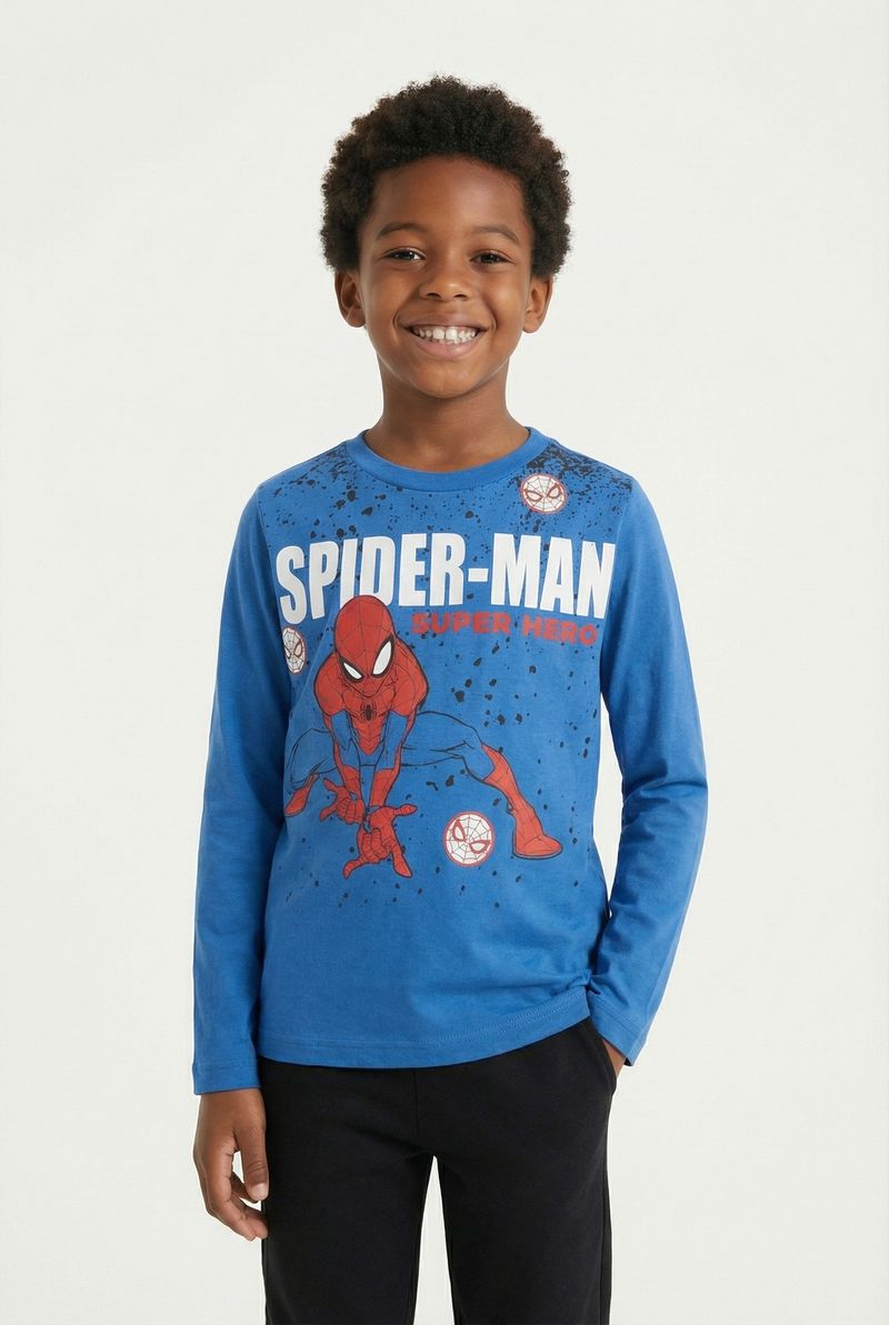 A Camiseta Infantil Spider-Man Super Herói Manga Longa Caedu é a roupa infantil perfeita. Em 100% algodão de meia malha, oferece conforto e durabilidade. Com estampa vibrante do Spider-Man em azul royal, inspira aventuras e estilo.