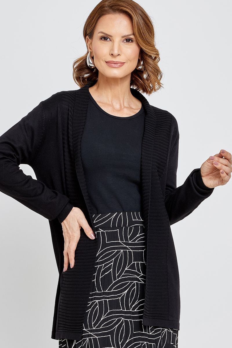 Básica e versátil, essa capinha em tricô preta é perfeita para sobreposições elegantes e práticas no dia a dia.