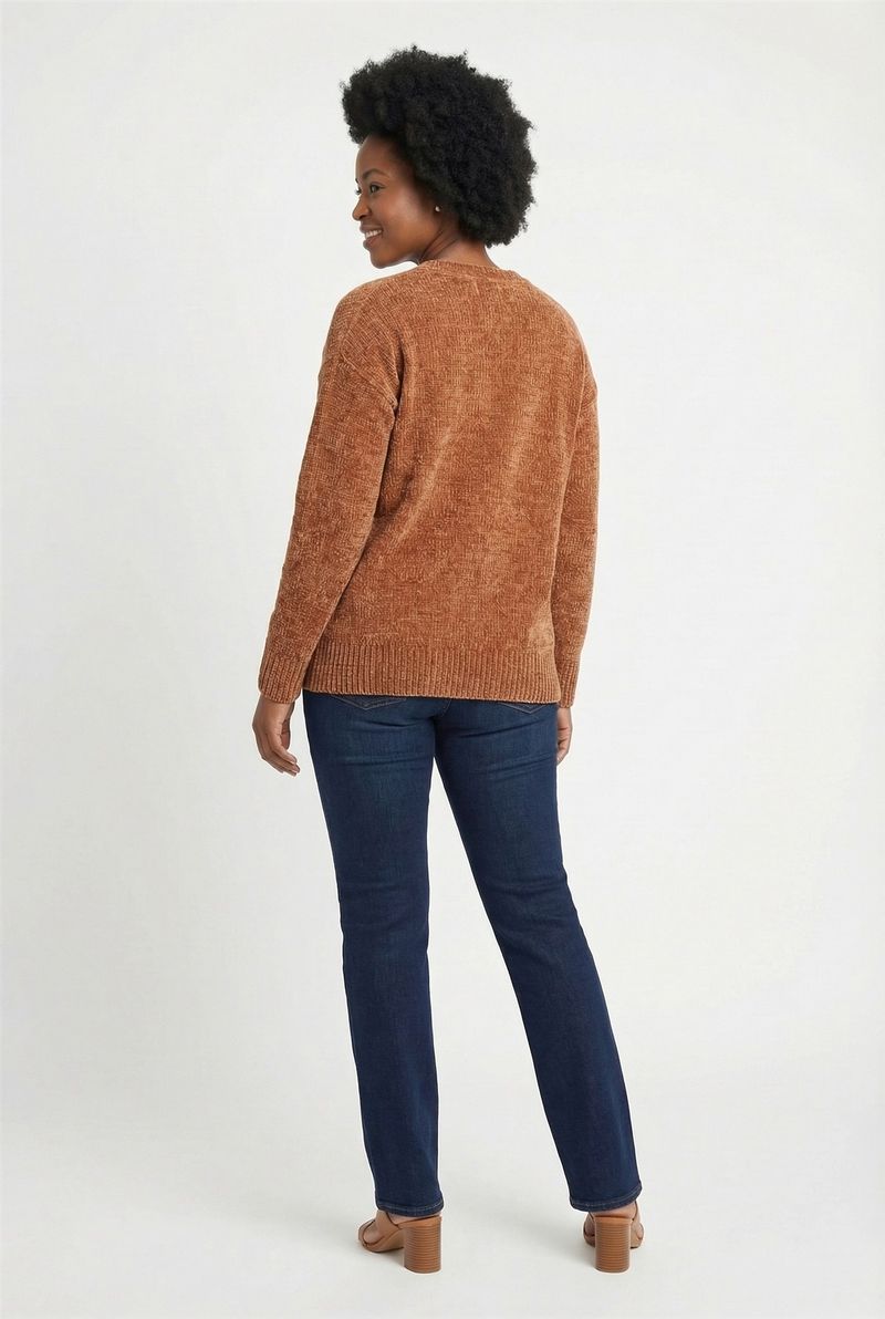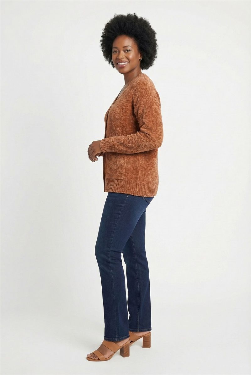 Descubra o Cardigan Feminino Aconchegante de Chenille Caedu, a peça ideal para elevar seu estilo. Com sua textura felpuda e aveludada em tom caramelo, parte dos cobiçados tons terrosos, ele oferece conforto inigualável e um toque de alta moda. Possui práticos bolsos e um design versátil para diversas ocasiões.