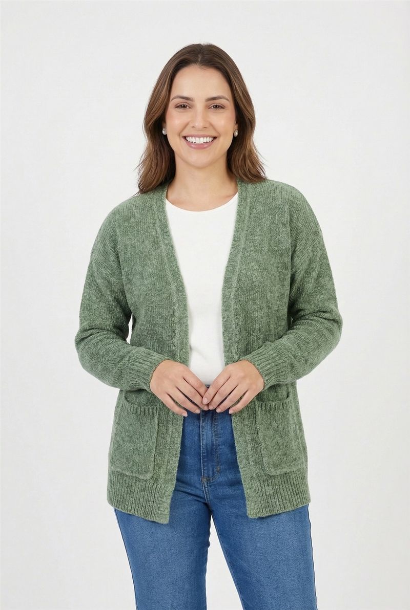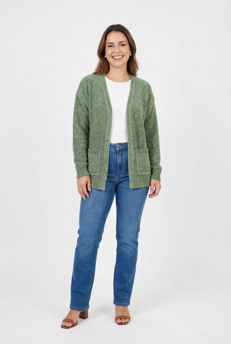 VestuárioFemininoCasacosCardigan fem casual fcag009b chenille verde escuro