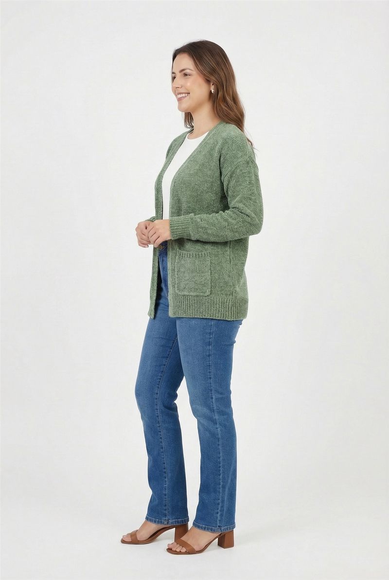 Cardigan fem casual fcag009b chenille verde escuro