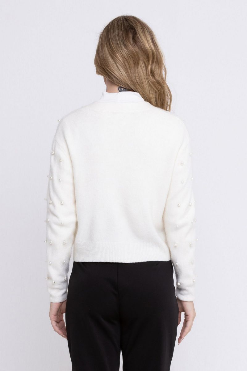 Cardigan Feminino em Tricô com Pérolas Branco