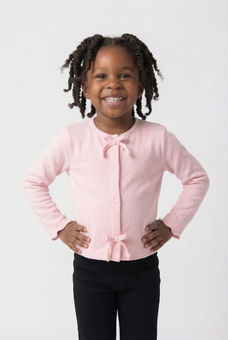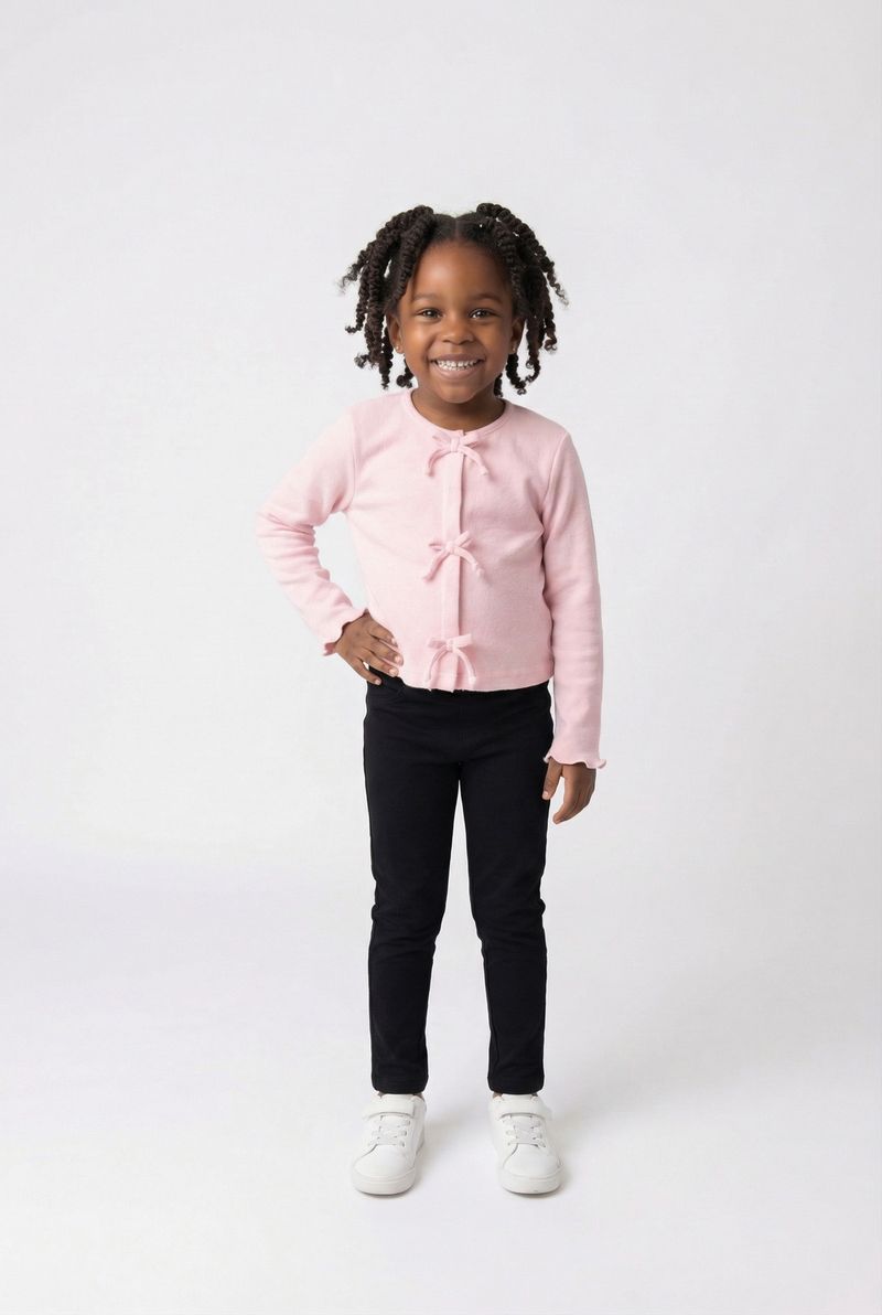 A Jaqueta Cardigan Infantil Rosa Claro Caedu oferece conforto e um toque de delicadeza para as pequenas. Com seu material em ribana e charmosos laços, esta peça é ideal para compor looks cheios de graça e praticidade, garantindo bem-estar em qualquer momento.