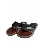 Detalhes: Listras vinho na palmilha, alças texturizadas