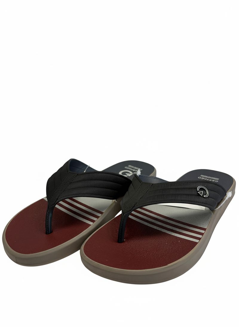 Experimente o conforto e o estilo do Chinelo Cartago Montreal Masculino Caedu. Com design urbano em preto e listras vinho, este chinelo de borracha oferece durabilidade e um toque moderno para seus momentos de lazer. Ideal para quem busca praticidade e um visual despojado.