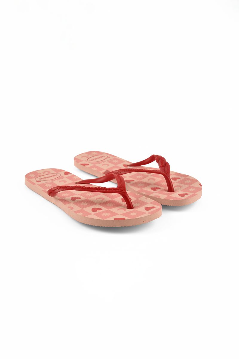 Desperte a alegria com o Chinelo Feminino Caedu. Sola rosa claro com estampa de corações e tiras vermelho-coral. Em borracha, oferece conforto e durabilidade. Ideal para moda e bem-estar em calçados.