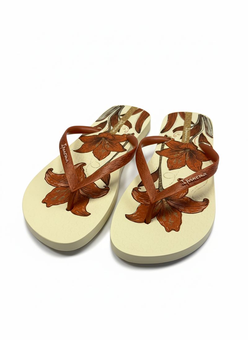 Sinta a leveza e o estilo do Chinelo Jpanouka Oasis Floral Bege e Caramelo da Caedu. Com design floral exclusivo e cores terrosas, este calçado de borracha oferece conforto duradouro para seus pés. Perfeito para um look despojado e cheio de personalidade.