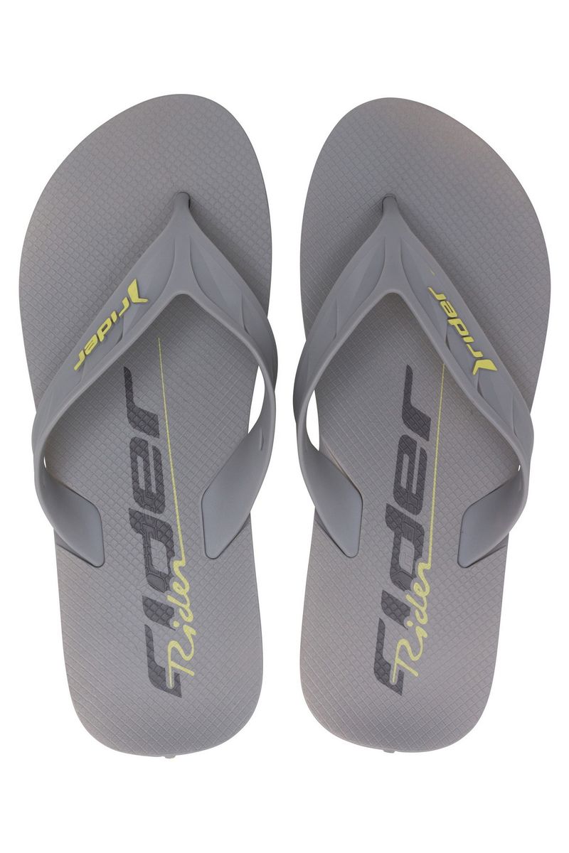 Chinelo masculino da marca Rider, modelo Street. Possui tiras de dedo largas com marca em alto relevo, e solado emborrachado com frisos antiderrapantes para garantir maior segurança e conforto ao caminhar.
