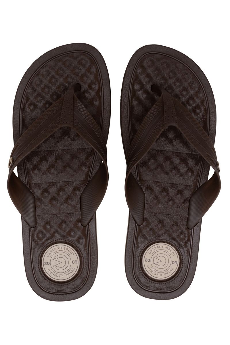 Chinelo masculino da marca Cartago, modelo Arizona. Possui tiras de dedo largas com marca em alto relevo, e solado emborrachado com frisos antiderrapantes para garantir maior segurança e conforto ao caminhar.