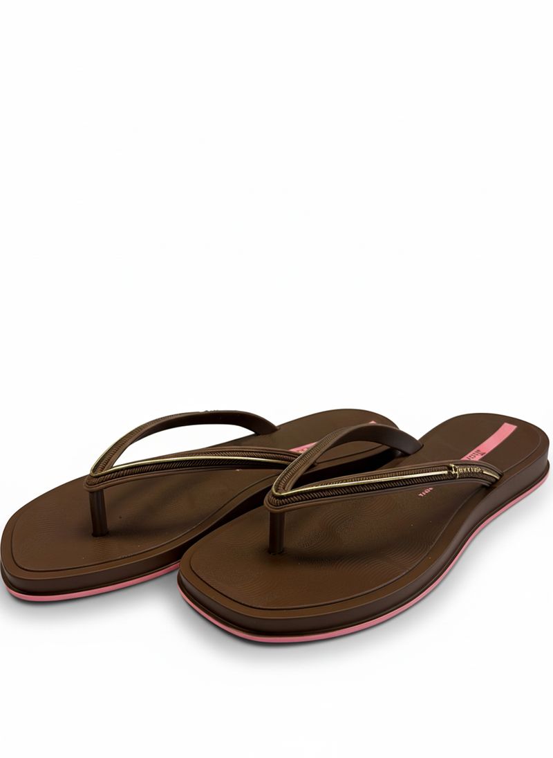 Sinta o conforto e a elegância do Chinelo Ipanema Glow Caedu. Com seu design marrom sofisticado, detalhes dourados e a vibrante sola rosa, este chinelo de borracha é a escolha perfeita para quem busca estilo e bem-estar em um só produto, elevando sua moda com a qualidade Caedu.