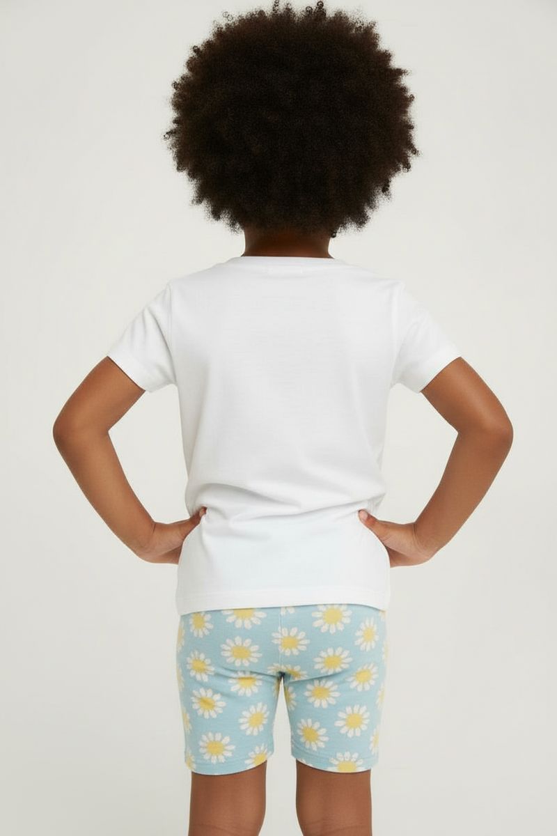 Desperte a alegria com o Shorts Ciclista Infantil Floral Margaridas Caedu. Confeccionado em 100% algodão e material ribana, oferece conforto e liberdade para brincar. A estampa floral vibrante em azul claro com margaridas traz moda e estilo. Essencial nas roupas Caedu.