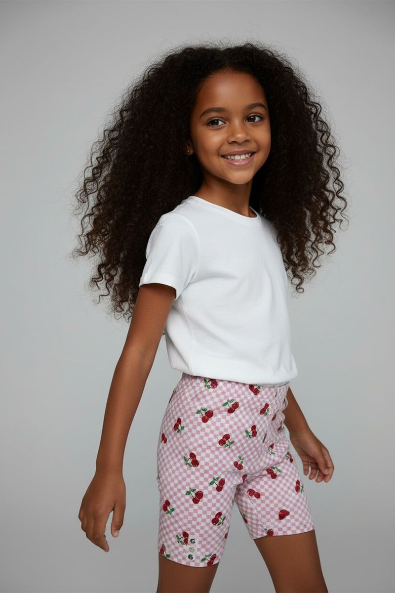 Inspire a alegria com o Shorts Ciclista Infantil Caedu. Feito em COTTON macio, oferece conforto e liberdade para as aventuras. Sua estampa de cerejas e xadrez rosa, com cós elástico, adiciona um toque de moda e diversão. Uma roupa vibrante e barata da Caedu para sua pequena, disponível na loja virtual.