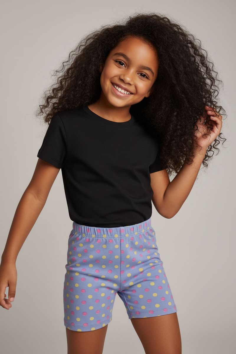 Combine com blusas básicas ou estampadas para um look divertido e confortável. Use com sandálias ou tênis brancos para um visual leve e despojado. Adicione acessórios de cabelo coloridos para um toque extra de charme e complete com uma jaqueta jeans para os dias mais frescos.