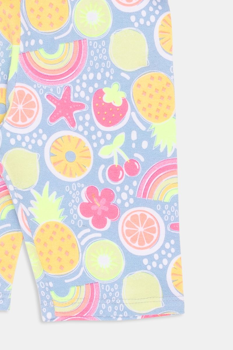 Ciclista infantil com estampa de frutinhas arco-íris rosa, colorido e cheio de estilo para os pequenos.